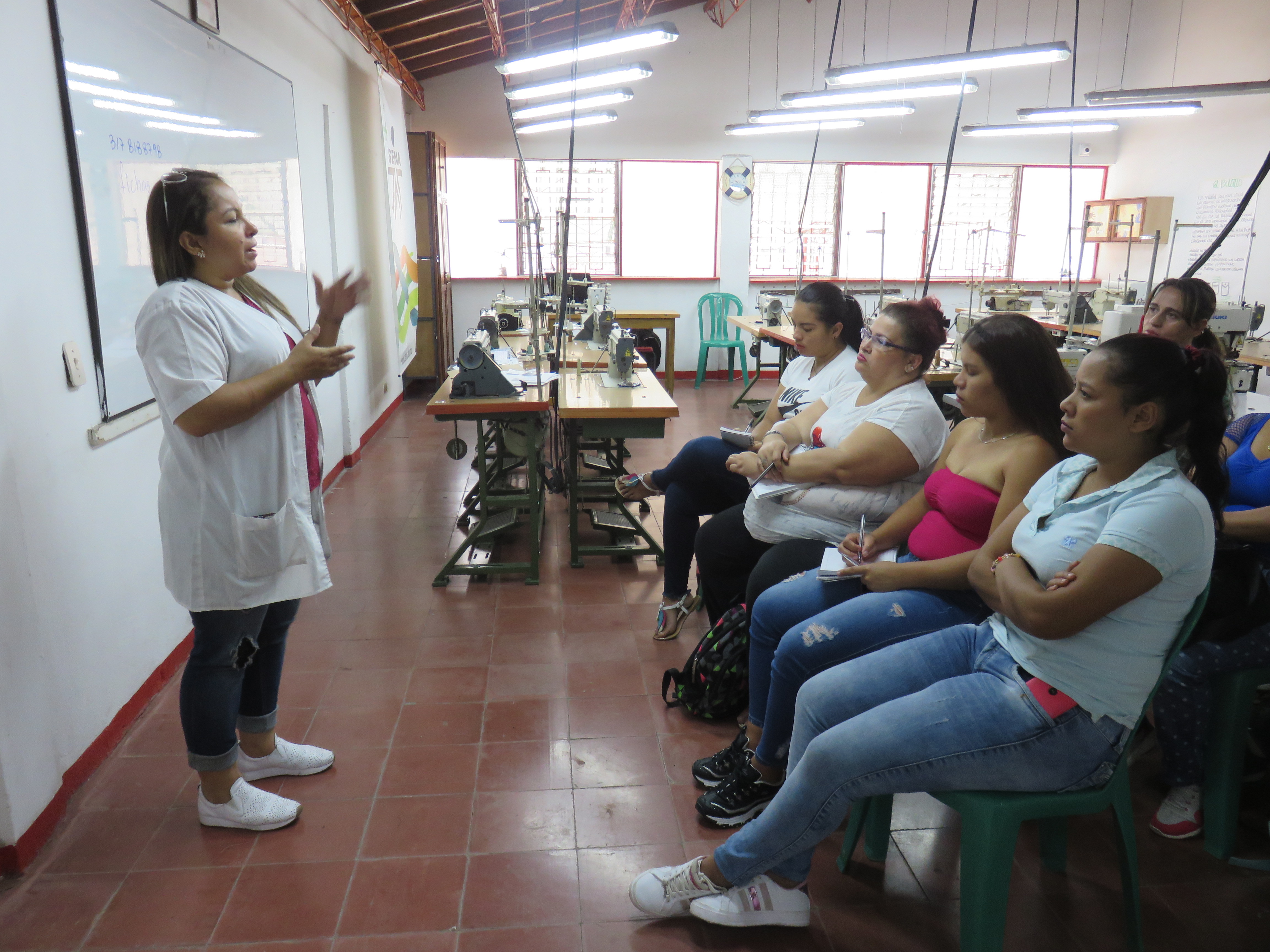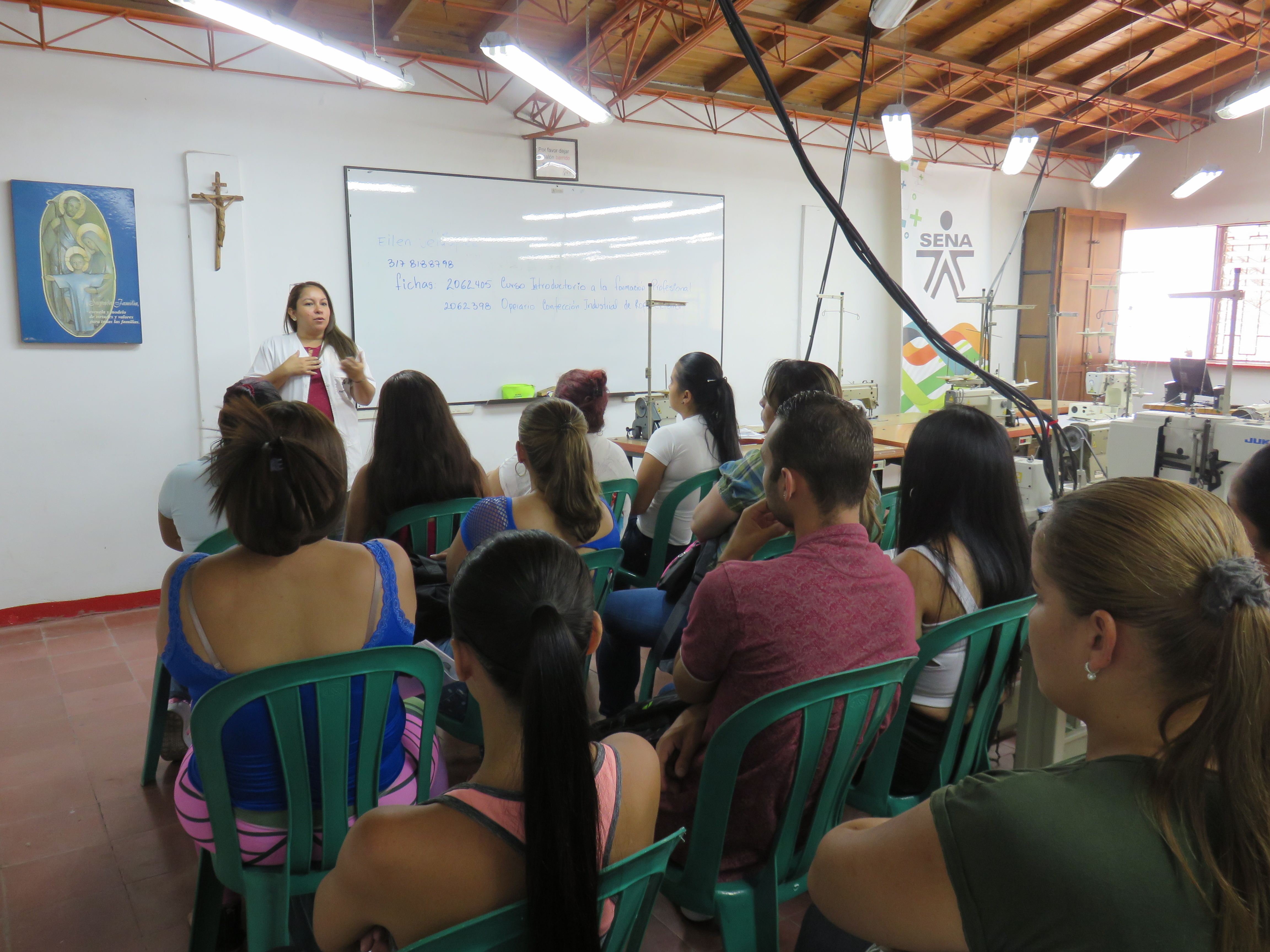 Este año, iniciamos un nuevo curso en alianza con el SENA, donde se capacitarán y se formarán 30 hombres y mujeres en maquina plana para la confección industrial.