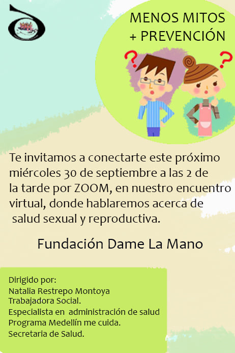 los invitamos para que se conecten mañana miércoles 30 de septiembre a las 2 de la tarde en nuestro encuentro virtual, donde hablaremos acerca de la salud sexual y reproductiva, les compartimos el link para ingresar por zoom.